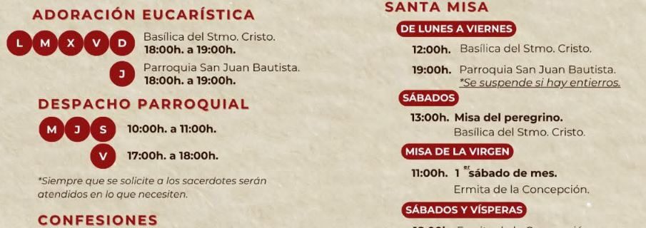 Sábado 25 de Enero 2025 Punto de reunión. Pabellón del Colegio (Calle Concepción, 40). 10:00 Recepción de peregrinos (tanto grupos como particulares). 10:30 Ponencia a cargo de don Mikel Garciandía Goñi, Obispo de Palencia y miembro de la Comisión para la Evangelización, Catequesis y Catecumenado de la Conferencia Episcopal Española. Exposición del Santísimo y Confesiones. …